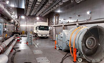 重型排放室有天津和鹽城兩個重型轉轂試驗室,其中鹽城試驗室是國內唯一集成重型車四驅轉轂、高低溫環境倉、高海拔環境進排氣模擬和陽光模擬系統于一體的重型整車工況和環境模擬實驗室,主要承擔重型車能耗排放認證工作,涵蓋重型車公告、環保、營運三大板塊。細分轉轂油耗排放測試、道路行駛阻力測試、道路油耗測試、PEMS試驗、OBD數據一致性以及新能源車輛能耗續駛里程等。